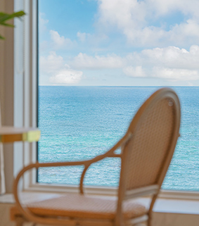 오션뷰 스파 객실은 푸른 바다를 바라보며