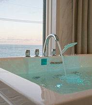 오션뷰 스파 객실은 푸른 바다를 바라보며